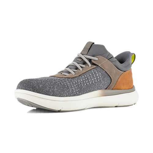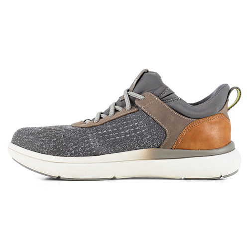 Easy On. Tough at Work. The Fleet Work Men's Gray and Brown Composite Toe Elastic Work Sneaker is built for those who demand protection and expect comfort. Designed for the toughest jobs, this safety toe series features SupaStep heel technology and elastic no-tie laces for effortless hands-free entry. With built-in Flexsole technology, you get instant, all-day comfort right out the box.